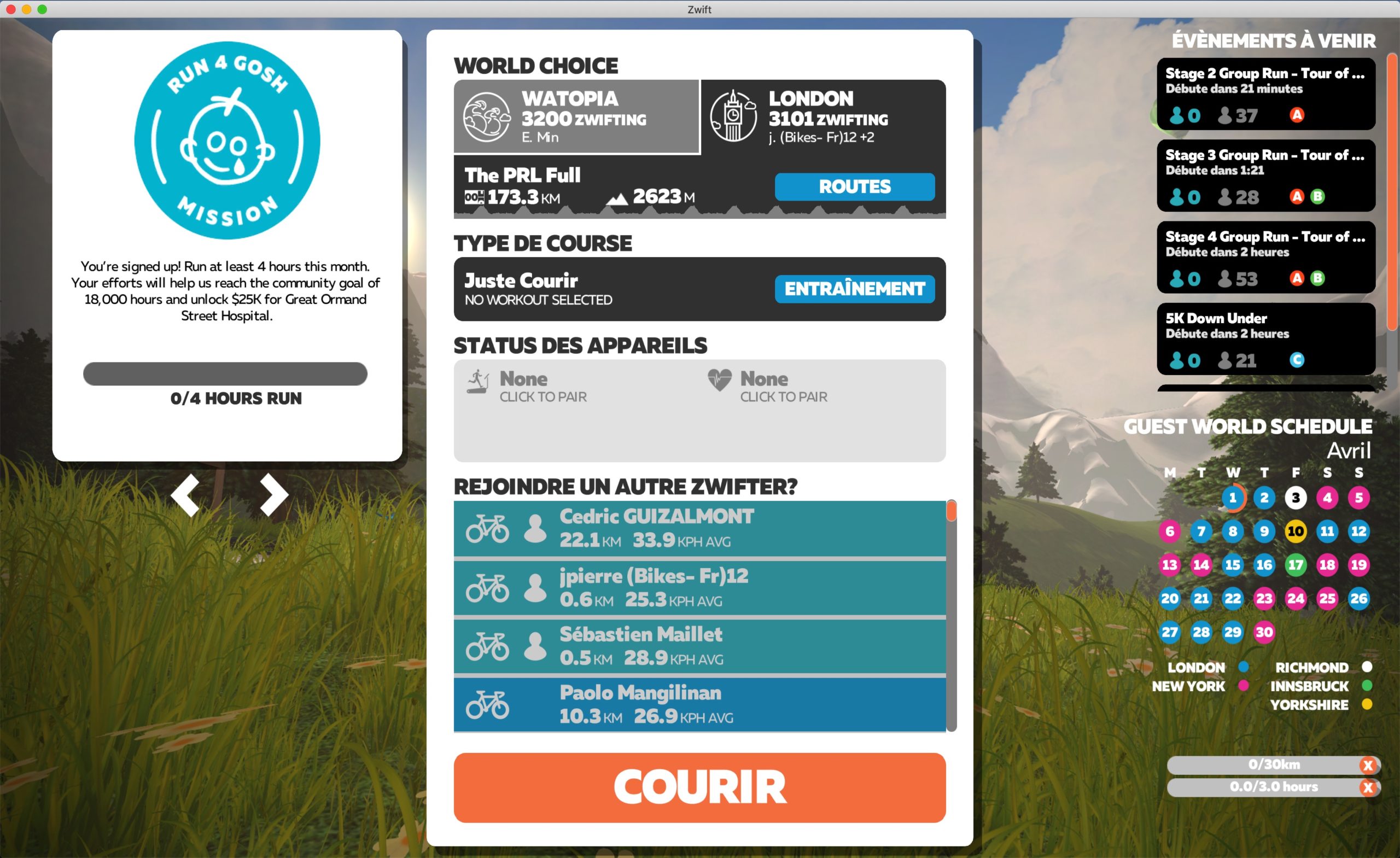 Zwift – La mission Run 4 GOSH